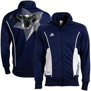 adidas USA Navy Blue 2010 FIFA World Cup Track Jacket - Get geared up for the 2010 FIFA World Cup in South Africa in this USA track jacket tee by adidas featuring an embroidered adidas logo on the chest, a custom printed team logo across the back, and a custom adidas 3 Stripe pattern woven at the front bottom hem!