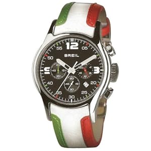 Brand: Breil Item #: BW0243 Style: Globe Size: Unisex Case: Stainless Steel 316L Dial Color: Black Bracelet: Genuine Leather Clasp: STainless strap clasp Movement: Quartz movement with date and Chronograph Crystal: Mineral Anti-Glare Water Resistant: 100meters Warranty: 2 Year International LIMITED EDITION Only 2006 produced! Diameter 43mm Strap is white/red/green Genuine Leather Scratch resistant mineral crystal Luminous hands with Red and green markers Water resistant to 100m Quartz movement with date and Chronograph Presentation box with Instruction booklet Full BREIL warranty