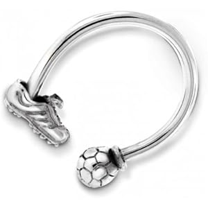 This sporty Designer inspired key ring is made of solid .925 sterling silver and features a soccer ball and shoe design on both ends. The soccer ball can be unscrewed for easy insertion and removal of keys. Casual and fun. Perfect for your favorite soccer hooligan. Shoe is 3/4" L x 3/8" W